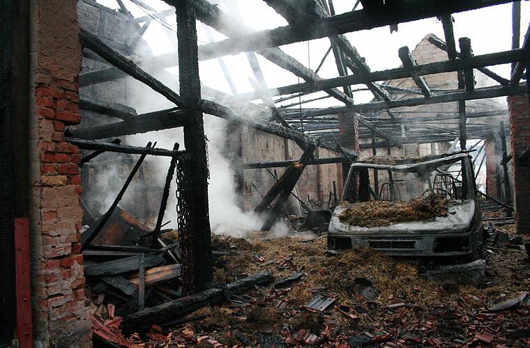 Überhaupt schätzt die Polizei, dass ein  Schaden in sechsstelliger Höhe entstanden ist.  Bei den Nachbarn ist ein Wohnmobil verbrannt, die landwirtschaftlichen Gebäude sind vollkommen zerstört, die Wohnhäuser teilweise in Mitleidenschaft gezogen.