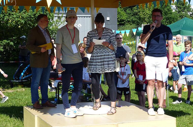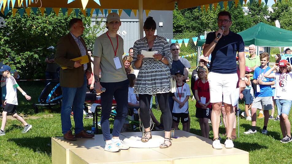 Bürgermeister Heiko Bäuerlein höchstpersönlich betätigte die Startklappe und Tourismus-Chef Marco Maiberger führte gekonnt durch das bunte Programm. Am Zieleinlauf erhielten alle Teilnehmer eine Urkunde, einen Schwimmbadgutschein und die Kinder zusätzlich einen Eisgutschein.