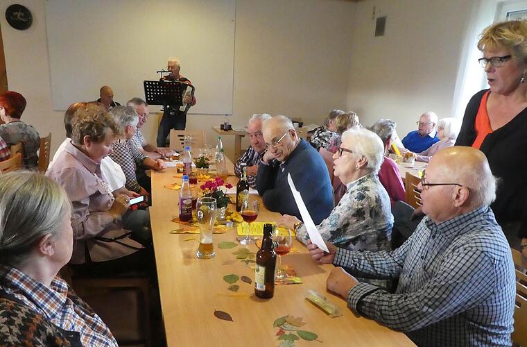 Oktoberfest im Sportheim – unter diesem Motto lud die Bürgermeisterin Gerlinde Stier zu einem Gemeindenachmittag mit Kaffee, Kuchen und, was bei einem Oktoberfest nicht fehlen darf, zur Weißwurst mit Laugenbrezeln im Sportheim Kleinlangheim ein. Die Bürgermeisterin begrüßte laut einer Pressemitteilung die zahlreichen Gäste und den zweiten Bürgermeister Dieter Zeller. Als Stimmungsmacher waren diesmal Alfred Bader und Michael Mix als "Duo Mix" gekommen. Mit Liedern wie dem Frankenlied und weiteren Volksliedern, die Michael am Akkordeon, Alfred am Cajon oder mit seinen Löffelklappern begleitete, animierten sie die Zuhörer zum kräftigen Mitsingen. Die guten Geister Hildegard Friedel, Margot Schulz, Elfriede und Willi Köhler versorgten aufmerksam die Zuhörer. Zur Abwechslung des ganzen Programms trugen Marlene Scheidt und Sigrid Gierth Geschichten und Anekdoten vor, die das Publikum amüsierten.