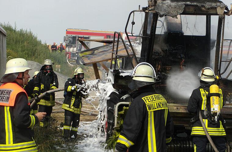 Ein Schaden in Höhe von 190 000 Euro entstand am Mittwochnachmittag an einem selbstfahrenden landwirtschaftlich genutzten Häckslers in Willanzheim. Die Feuerwehren aus Willanzheim, Iphofen und Mainbernheim waren im Einsatz.