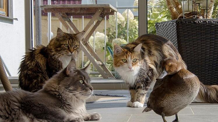 Dann ein trauriger Moment: Pünktchen schaffte es nicht, alle Aufpäppel-Mühe erwies sich als vergebens. Dafür entwickelte sich Ducky um so prächtiger. Nach und nach lernte die Wildente neben den zweibeinigen auch die vierbeinigen Mitbewohner kennen. Ducky schlug sich tapfer: Dem Hund trat das Entenkind selbstbewusst gegenüber. Und von den vier Katzen ließ es sich ebenfalls nichts bieten.