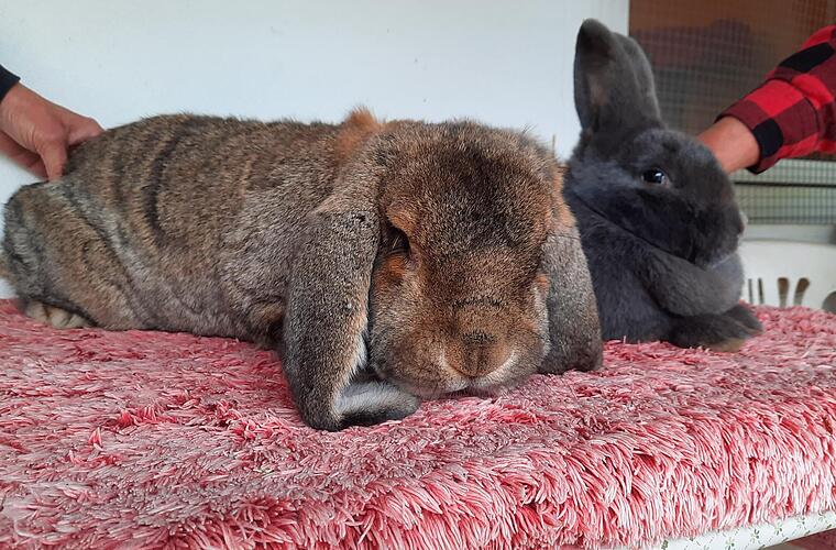 Die blaue Häsin Bella und der braune Hektor (Foto) sind das Pärchen. Sie sind drei Jahre alt, der Rammler ist kastriert. Auch der schwarze Sohn ist kastriert, er ist zwei Jahre alt. Das Pärchen sucht gemeinsam ein neues Zuhause, der Sohn möchte in einer Wohngemeinschaft mit einer netten Häsin leben.