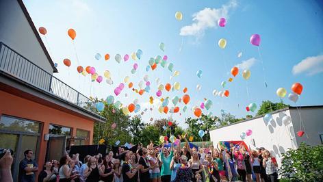 Außerdem wurden bei einer Feierstunde 80 Schüler der elften Klassen der Berufsfachschulen für Ernährung- und Versorgung, Kinderpflege sowie Sozialpflege verabschiedet. Nach den Reden von Schulleiterin Scheckel, Landrat Helmut Weiß (Neustadt-Aisch/Bad Windsheim), dem Landtagsabgeordneten Hans Herold und dem Scheinfelder Bürgermeister Claus Seifert flogen viele bunte Luftballon mit den Wünschen der Absolventen in die Luft.