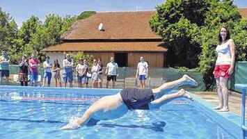 Bürgermeister Rainer Ott ließ es sich deshalb wie auch schon sein Vorgänger August Hopf nicht nehmen, mit einem Sprung ins Wasser die Freibadsaison am Samstag offiziell zu eröffnen. Viele Badegäste, darunter auch etliche Gemeinderäte und Pfarrerin Christine Stradtner, waren gekommen, um den neuen Bürgermeister springen zu sehen.