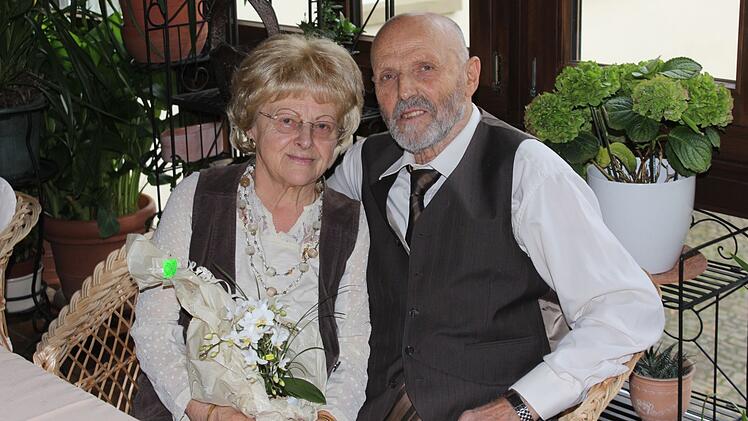 Diamantene Hochzeit feierten Heidi und Rudi Gutjahr zu Hause in der Kleinlangheimer Pfarrgasse. Nach der standesamtlichen Trauung am 27. November 1959 wurden sie einen Tag später in der Kitzinger Spitalkirche kirchlich getraut. Kennen gelernt haben sie sich 1955 auf der Kirchweih in Rüdenhausen, wo sie nach der Heirat dann bis 1971 wohnten, bis sie nach Kleinlangheim zogen.