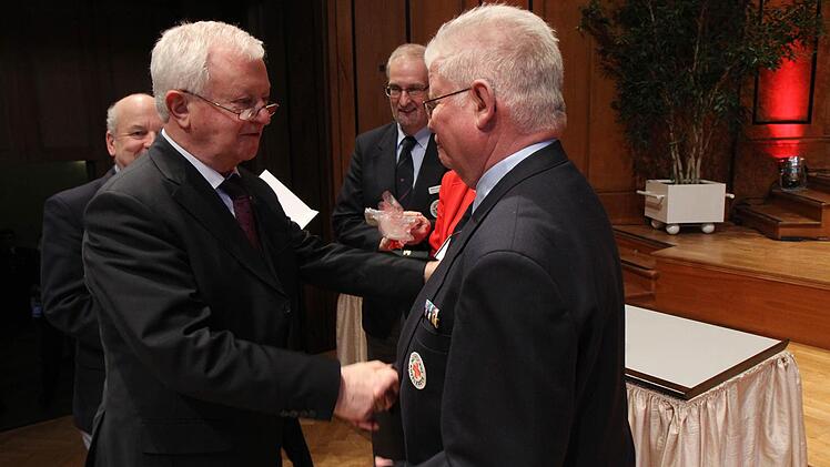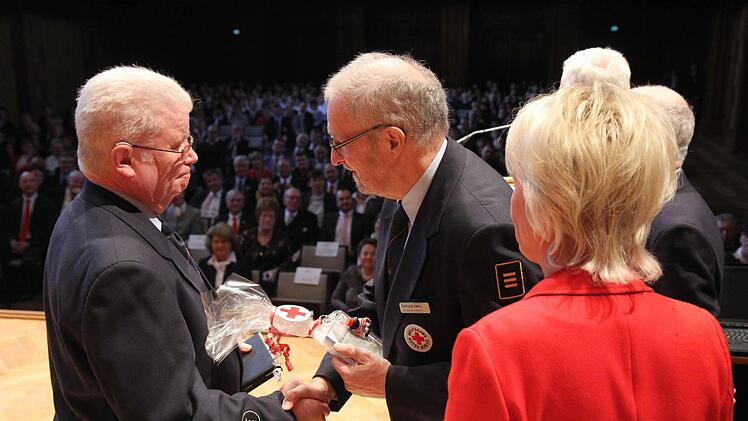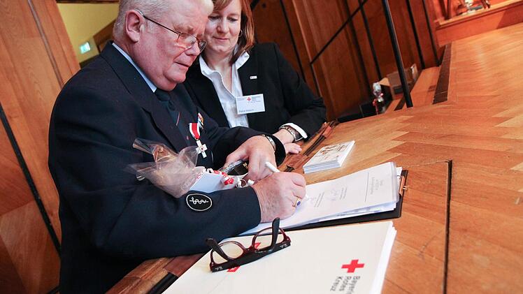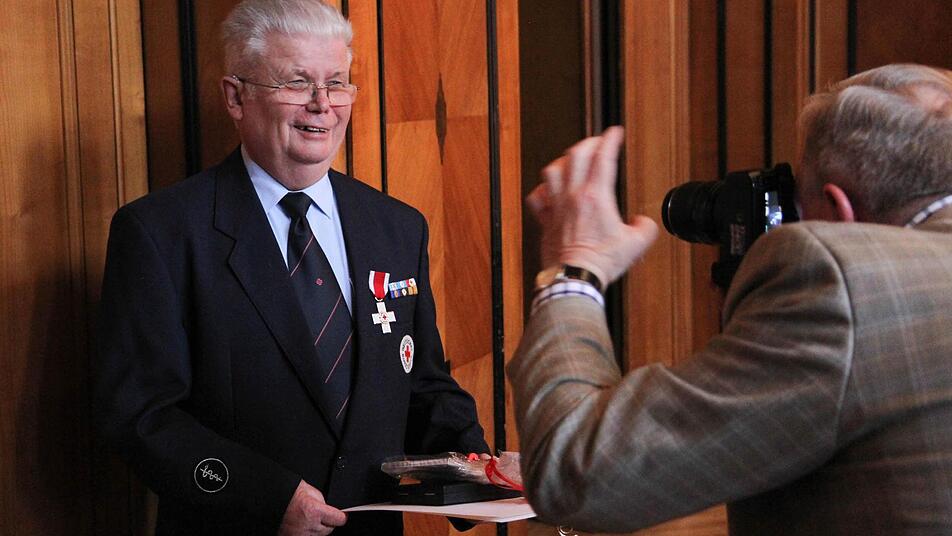 Am Sonntag kam eine weitere Auszeichnung dazu, die nicht viele tragen: Das Ehrenzeichen des Deutschen Roten Kreuzes. Dr. Rudolf Seiters, Präsident des Deutschen Roten Kreuzes, hat Heinrich Grötsch im Bad Kissinger Regentenbau am Sonntag damit geehrt. "Das ist schon ein besonderes Lob", sagt Heinrich Grötsch und freut sich bescheiden.