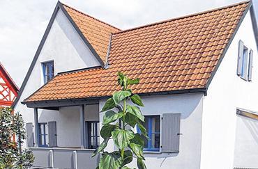 Immer größer und größer wurde die Sonnenblume im Garten von Familie Kirchner am Marktplatz in Iphofen. Stolze 4,60 Meter haben die Besitzer am Mittwoch gemessen. „Obwohl sie dieselbe Pflege bekam wie ihre Artgenossen, wuchs sie denen einfach davon“, heißt es in der E-Mail. Hoch oben genießt die Blume nun das Sonnenbad.