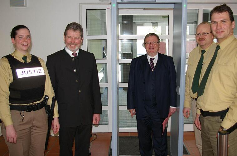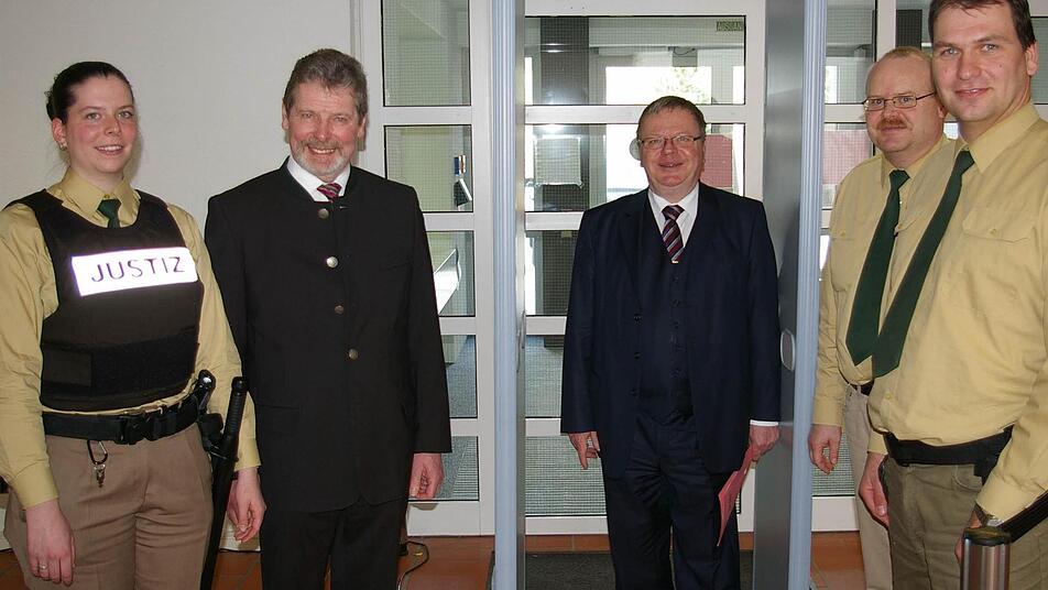 Sicherheit hat Priorität Einen Brennpunkt im Gerichtsgebäude hat Lückemann gleich zu Beginn seines Besuches passiert. Nach den tödlichen Schüssen auf einen Staatsanwalt im Amtsgericht Dachau im Januar 2012 war auch im Kitzinger Amtsgericht das Sicherheitskonzept hochgefahren worden. Der Eingangsbereich war noch im letzten Jahr schusssicher verglast worden. Landesweit wurden 140 hauptamtliche Wachtmeisterstellen geschaffen. Auch in Kitzingen wurde das Sicherheitspersonal entsprechend aufgestockt. Zwei Wachtmeister und eine Justizhelferin sorgen nun mit zwei zivilen Kräften für die Sicherheit im Gerichtsgebäude.
