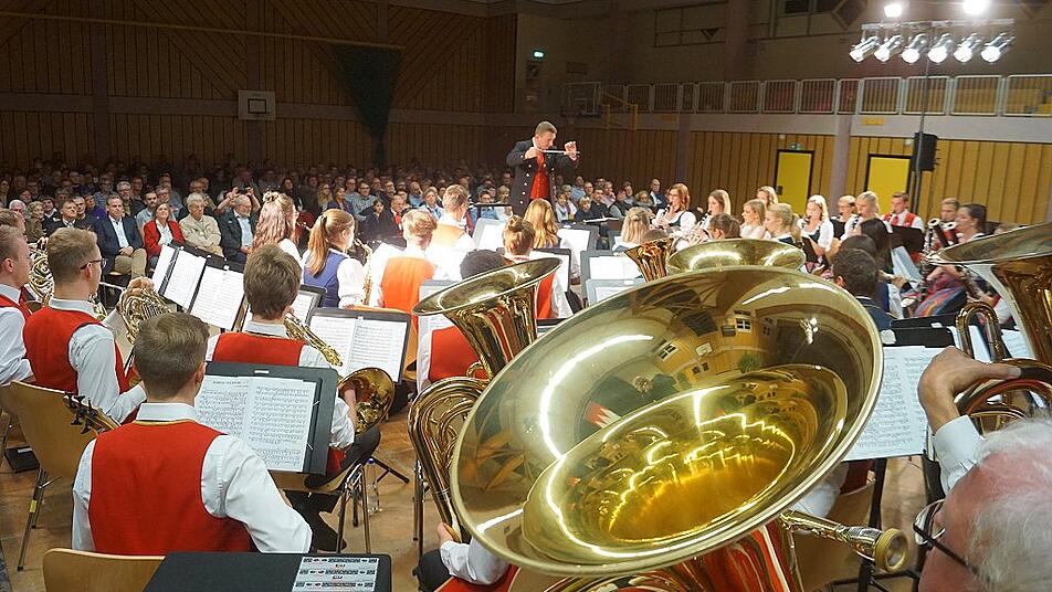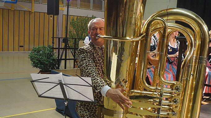 Als Professor Jörg Wachsmuth seine „Ilse“ in die Mainschleifenhalle schob, ging ein Raunen durch die Reihen der Zuschauer, und die zückten ihre Smartphones und Fotoapparate. Gute 60 Kilogramm ist „Ilse“ schwer, bei einer Größe von 2,20 Metern, und sie ist die größte spielbare Tuba der Welt. „Da kommt man sich schon etwas klein vor“, gab der nicht gerade klein gewachsene Wachsmuth zu. Und auch beim Dirigenten Ernst Oestreicher war so etwas wie leichte Nervosität spürbar. Immerhin stand nach „Der alte Brummbär“, gespielt vom Symphonischen Blasorchester (SBO) Volkach mit Wachsmuth, der Höhepunkt des Abends an: der „Hummelflug“ von Nikolai Rimski-Korsakow aus dessen Oper „Das Märchen vom Zaren Saltan“, gespielt eben auf der weltweit größten spielbaren Tuba.