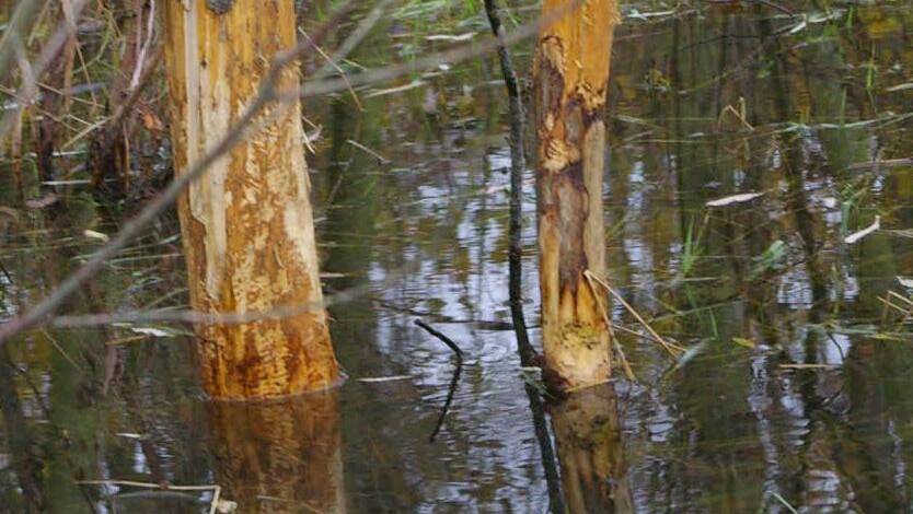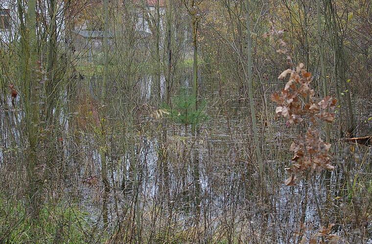 Momentan kann man ihn daher eher an den Spuren erahnen, die er hinterlässt. Einige Bäume in seinem Revier sind angeknabbert. Am sichtbarsten ist aber seine Bautätigkeit am Bimbach, der in einem größeren Gebiet über die Ufer getreten ist und das umliegende Wäldchen in eine Seenlandschaft verwandelt. Die Behördenvertreter sehen dies aber sehr gelassen.