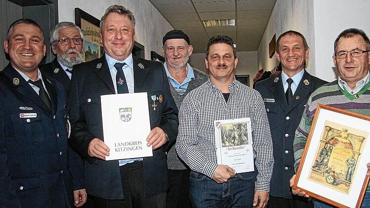 Den Höhepunkt der Jahreshauptversammlung bildete die Ehrung von Heinz Wenkheimer. Der erhielt nach 40 Jahren Dienstzeit das staatliche Feuerwehrehrenzeichen in Gold und einen Gutschein für eine Woche in Feuerwehrerholungsheim.