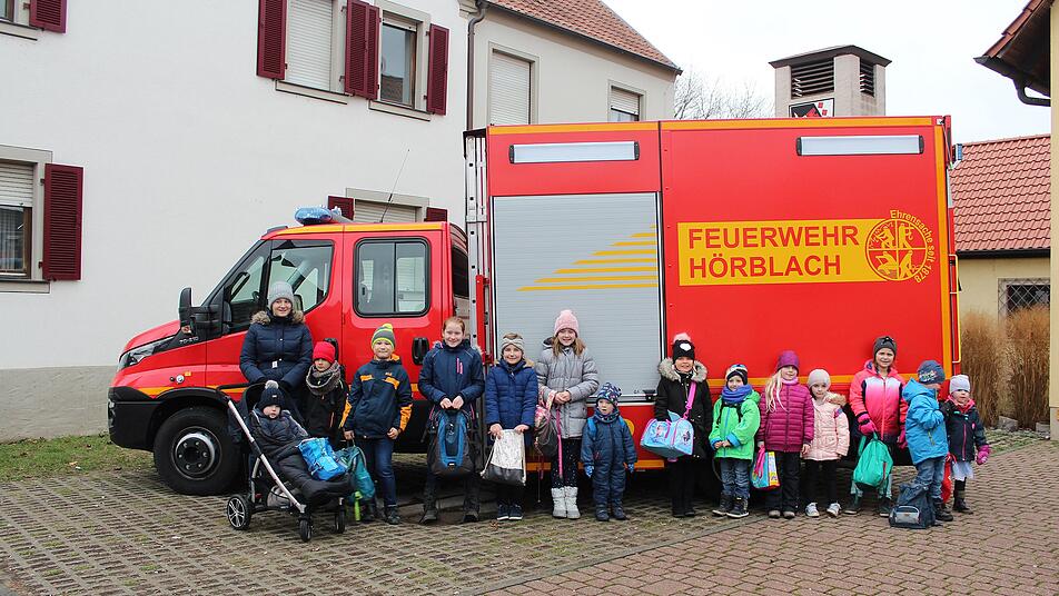 Auch am Neujahrstag 2019 zogen in Hörblach Kinder von Haus zu Haus um den Bewohnern die Neujahrsglückwünsche mit Singen von Liedern zu überbringen. Sie folgten damit einer uralten Tradition, in der die Kinder in damaliger karger Zeit einen Lebkuchen oder Eierring zum Dank erhielten. Heute erhalten sie Süßigkeiten und den einen oder anderen Euro. Der Liedtext „ In Gottes Namen wir Anfang, ein neues Jahr zu singen an …“ wurde in den 60er Jahren vom damaligen Lehrer der Dorfschule Hans Rüthlein eingeführt. Zuvor wurden die Glückwünsche mit einem Sprechgesang der da lautet „Glückseliges neues Jahr, Fried und Einigkeit, langes Leben im Himmelreich“ vorgetragen. Waren es doch in den 60er Jahren noch mehr als 35 Kinder, sind heute nur noch 15 Kinder unterwegs. In den vergangenen Jahren hatte die Feuerwehr von Hörblach einen Stehempfang vor dem Feuerwehrhaus mit Glühwein organisiert, der zunehmend gut bei den Dorfbewohnern angenommen wird. In diesem Jahr wurde dann auf dem Vorplatz des Feuerwehrhauses von den Hörblachern das „Hörblacher Lied“ aus vielen Kehlen gesungen.