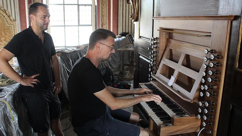Die Orgel auf der Kirchenempore wurde vor vier Jahren, als die Renovierung der Kirche begann, ausgelagert und in die Werkstatt der Firma Weishaupt nach Westerndorf bei Augsburg gebracht. Lediglich das Gehäuse musste aus Gründen des Denkmalschutzes in Wiesentheid bleiben, alles andere wurde erneuert.