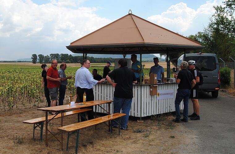 Mit schmackhaften Düften und Informationen über die Sonnenblumenölgewinnung im Kitzinger Landkreis lockte ein ganz besonderer Stand Radfahrer und Fußgänger jüngst am Radweg, der die Osteinfahrt des Flugplatzes Kitzingen (Connect) kreuzt. Die folgenden Informationen sind einer Pressemitteilung des Landratsamtes Kitzingen entnommen.
