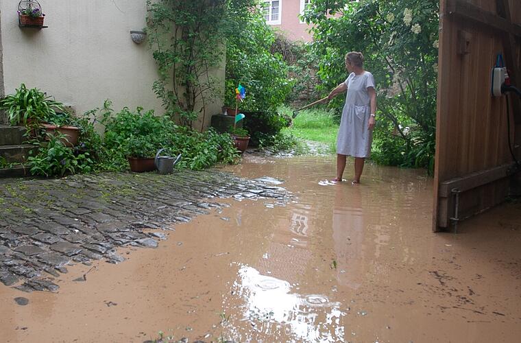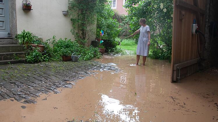 Drei Ratsmitglieder und ein Zuschauer sprinten los, sie sind bei der Feuerwehr Mainstockheim und wollen jetzt helfen. Zum Glück war es diesmal nicht ganz so schlimm: Nur knöcheltief steht das Wasser im Hof, der Zustrom von oberhalb versiegt so langsam. Aber, so Peter Brandner am Ende der Ratssitzung: „Es war wie immer.“ Schnittgut hatte ein Gitter am Bacheinlauf verstopft, das Wasser wich seitlich aus und strömte entlang einer Mauer dann ins Ebenhöh-Anwesen. Unverständnis beim Bürgermeister, wurden doch die Oberlieger am Riedbach schriftlich aufgefordert, ihre Behelfsbrücken über den Bach und die Komposthaufen am Bach zu entfernen, was wohl nicht geschehen war.