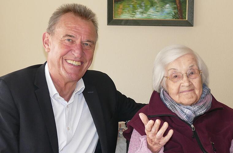 Seit acht Jahren wohnt die Jubilarin im Seniorenheim Mainblick und genießt täglich genau diesen Blick über den Main. "Es sind ja nur noch zwei Jahre bis 100", freute sie sich über die Gratulation von Oberbürgermeister Siegfried Müller besonders.