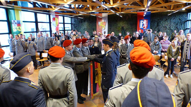 "Ich schwöre, der Bundesrepublik Deutschland treu zu dienen!" - So begann die Eidesformel, die 20 junge Soldatinnen und Soldaten im Offizierscasino der Volkacher Kaserne vor dem Kommandeur Oberstleutnant Franz Döllein und einer großen Schar von Gästen vortrugen.