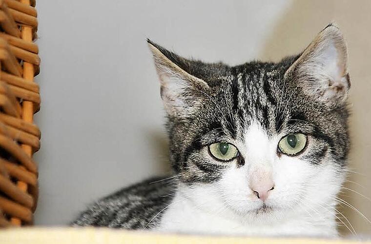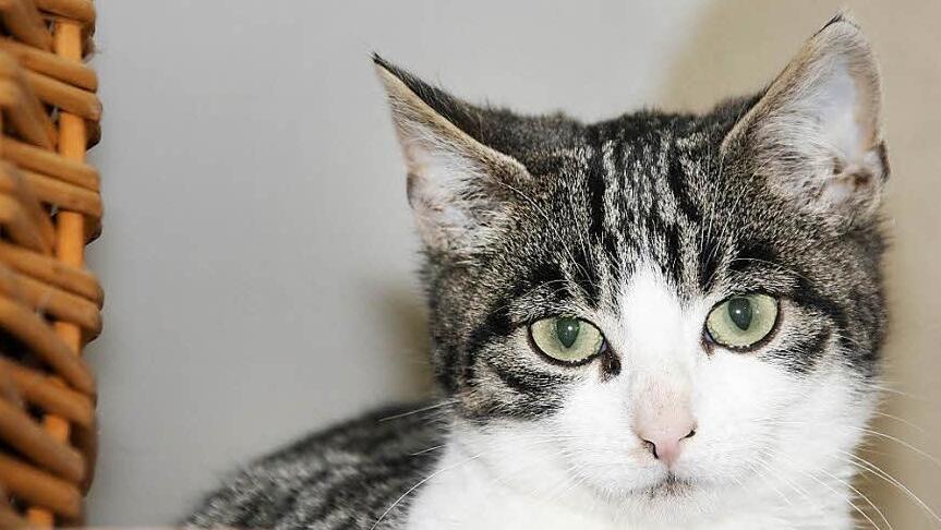 Das kleine Katzenbaby war für einen Zweibeiner nur ein Wurfobjekt. Im Tierheim sitzt es am liebsten hoch droben auf dem Schrank. Wo keiner hinkommt. Und wo es seine grünen Augen aus sicherer Entfernung auf die Menschen richtet.