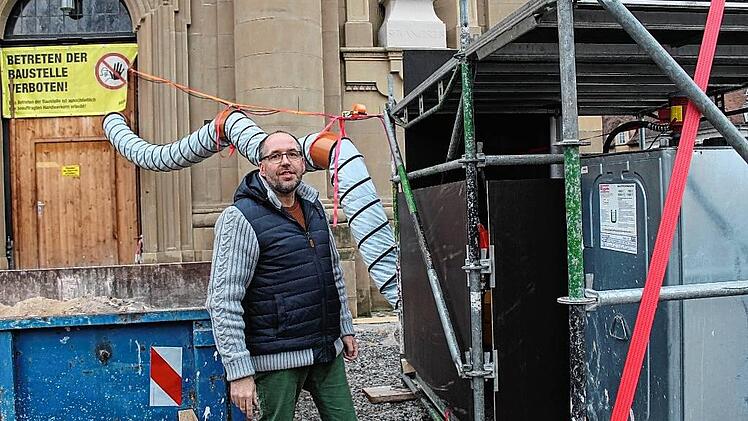 „Wenn die Temperatur unter einen bestimmten Wert absackt, dann bekommt man sie nicht mehr so schnell hoch“, erläutert der Kirchenpfleger. Zudem werde an vielen Stellen mit flüssigem Mörtel ausgebessert, der keinen Frost vertrage. Im Kirchenschiff läuft die bereits eingebaute Fußbodenheizung auf niedriger Temperatur.