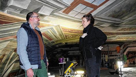Der Bereich sei mit vielen Farben übermalt gewesen, schildert Kirchenpfleger Paul Schug. Zudem habe sich der Putz so verdichtet, dass die Feuchtigkeit nicht aus ihm entweichen konnte. Nach und nach platzten die aufgetragenen Schichten ab.