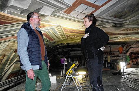 Dank Heizung können die Restauratoren der Kirche nun erstmals auch in den kalten Monaten arbeiten– im Mai soll das Gerüst aus dem Chor abgebaut sein.
