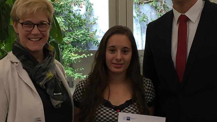 Kimberly Eisenreich, Jungangestellte der Sparkasse Mainfranken Würzburg im Beratungscenter Marktbreit, wurde durch die IHK Würzburg-Schweinfurt für ihr hervorragendes Prüfungsergebnis ausgezeichnet. Von 152 Teilnehmern im Berufsfeld Bankkaufmann/-frau hatte sie die zweitbeste Note erzielt. Die Urkunde überreichten ihr Abteilungsleiter Personalmanagement, Manfred Niesner, und ihre Beratungscenterleiterin Annette Brückner. Im Jahr 2018 hatten in Mainfranken insgesamt 4109 Teilnehmerinnen und Teilnehmer die Abschlussprüfungen in den unterschiedlichen Ausbildungsberufen absolviert. Die Prüfungsbesten in ihren jeweiligen Ausbildungsberufen werden jährlich von der IHK ausgezeichnet.