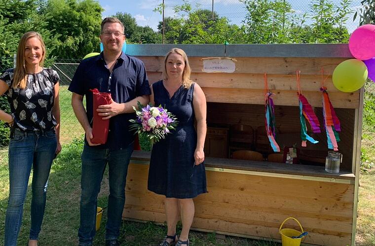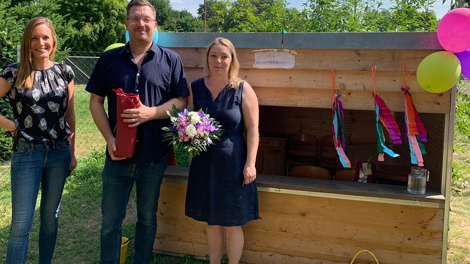 Große Freude herrschte bei den Kindern des Kindergartens St. Laurentius Schwarzenau dieser Tage: Sie konnten kurz vor den Ferien ihr neues buntes Spielhaus einweihen, heißt es in einer Pressemitteilung. Wie es sich gehört, wurde dieses mit einer kleinen Feier auf den Namen Villa Kunterbunt getauft. Ermöglich hatte den Hausbau die örtliche Firma ERI Deutschland GmbH – Wärmerückgewinung Systeme. Die Geschäftsführer Marion und Jürgen Fuchs, selbst Eltern eines Vorschulkindes, planten, bauten und finanzierten das wunderschöne Spielhaus und ein Hochbeet. Klar, dass Jürgen Fuchs daher bei der Einweihungsfeier ein richtiges rotes Band durchschneiden durfte. Seitdem dient die Villa Kunterbunt zum Eisverkaufen, Verstecken, Kochen, Backen und zu vielem mehr. Die Kinder dankten Familie Fuchs und der Firma ERI GmbH mit einem Lied. Das Bild zeigt (von links) Christina Seubert, Jürgen und Marion Fuchs (alle Firma ERI).