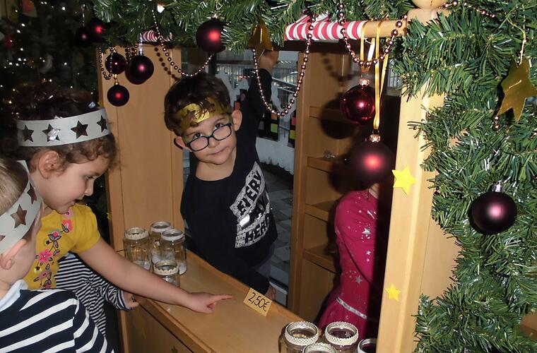 Endlich war es soweit: Im städtischen Kindergarten im Kastanienhof wurde der Weihnachtsmarkt eröffnet. Fast alle Kinder waren mit ihren Eltern da, heißt es in einer Mitteilung der Schule. Zur Einstimmung trafen sich Eltern und Kinder und sangen gemeinsam einige Weihnachtslieder. In Vorbereitung des Weihnachtsmarktes wurden von den Kindern und ihren Erzieherinnen in den Gruppen viele Dinge gebastelt, die an diesem Tag dann von den "Schlaumäusen" an die Eltern verkauft wurden. Das hat den Kindern sehr viel Spaß gemacht. Bei Kinderpunsch und Kuchen, der von den Eltern gebacken wurde, hatten die Eltern dann die Gelegenheit ins Gespräch zu kommen.