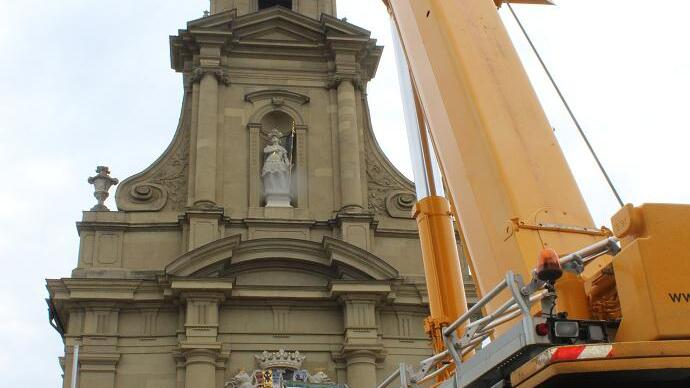 Nicht ungefährlich war ein Einsatz am Turm der Wiesentheider Mauritiuskirche, doch er hat sich gelohnt: die Uhr geht wieder.