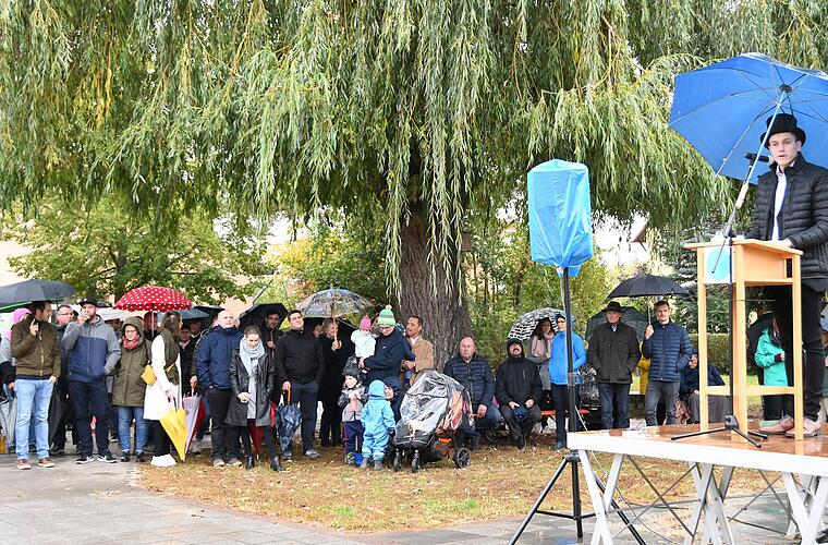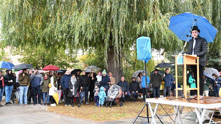 Ein verregneter Sonntag in Großlangheim und das ausgerechnet zur Kirchweihpredigt. Trotzdem war der Schulhof am Nachmittag gut besucht und die Zuhörer standen trocken unter Schirmen und eilig herbeigeschafften Pavillons und warteten offensichtlich gut gelaunt, was Prediger Matthias Hoppert zu berichten hatte.