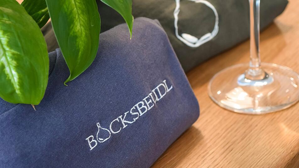 - "Bocksbeudl.Clothing": typisches Frankenwein-Behältnis wird Logo