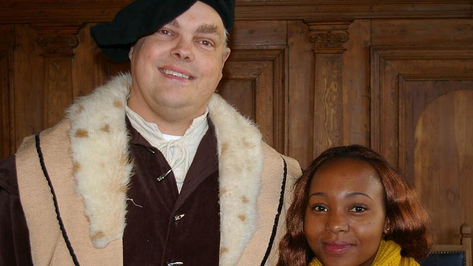 Unabhängig davon wird Kitzingen auch für weitere Hotelschiffe attraktiv. "Wir haben Kontakt zu neuen Reedereien aufgenommen", berichtet Vierrether. "Die Verträge mit ihnen sind quasi unterschriftsreif." Mit dem letzten Hotelschiff des Jahres hätte eigentlich die Delegation anlegen sollen, die Vierrether und sein Kollege im Ornat des Hofrates, Jürgen Reitmeier, im historischen Saal des Rathauses am 30. Dezember begrüßten. Das Hochwasser des Mains zwang die Reisegruppe aus Hamburg allerdings zur Anreise mit dem Bus. Hochwasser hin oder her - 34 Hamburger und die 19-jährige Südafrikanerin Thando Zuma, eine Freundin der ehemaligen Nenzenheimer Weinprinzessin Carolin Belz, freuten sich auf den letzten der rund 150 Hofratsempfänge 2012.