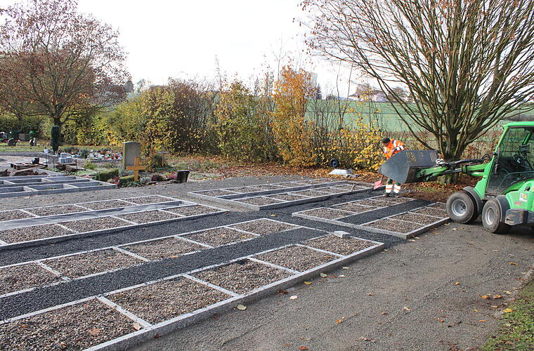 Wie die Stadt Kitzingen berichtet, hatten Andreas Barber und die Mitarbeiter der Stadtgärtnerei in den letzten Tagen alle Hände voll zu tun. Wo vor kurzem noch 32 Erdgräber waren, stehen jetzt 72 Urnenfelder bereit. Mit Bagger, Schaufel und Schubkarren hatten sich die Mitarbeiter an die Arbeit gemacht.