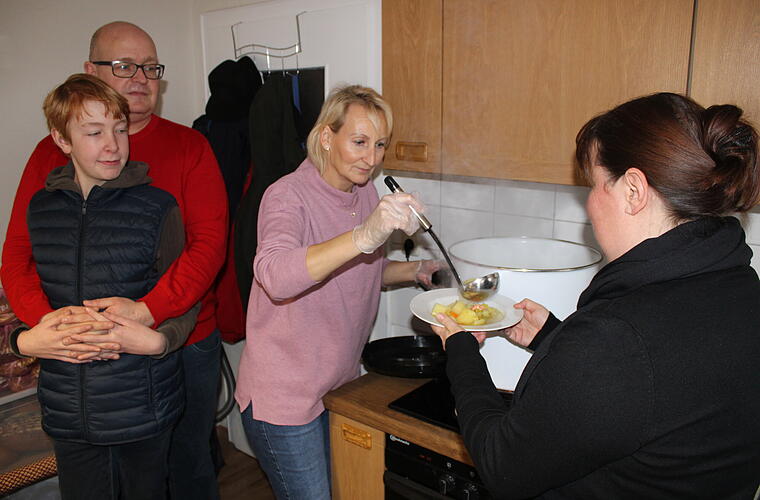 Die Gäste beugen sich über die dampfenden Teller und löffeln die Kartoffelsuppe mit Wiener Würstchen freudig in sich hinein. Uwe Hagen bringt Kaffee und Wasser an die Tische. „Schön zu sehen, dass unser Angebot so gut angenommen wird“, sagt der ehrenamtliche Helfer, der mit seinem Sohn Samuel seit vier Jahren im „Wegweiser“ aktiv mithilft.