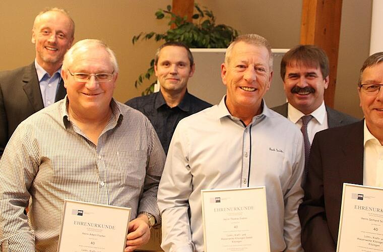 LKW-Geschäftsführer Marek Zelezny ehrte am Montag diese fünf Mitarbeiter für ihre 40-jährige Dienstzeit.