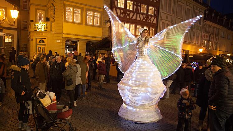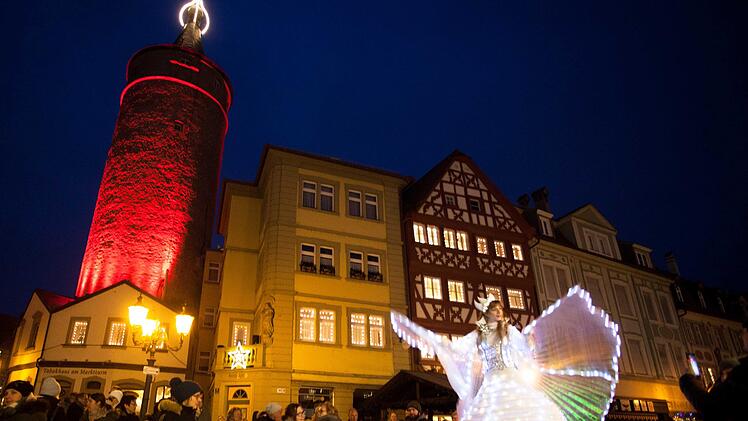 Es ist ein engelsgleiches Wesen, das da über den Kitzinger Marktplatz schwebt, hoch über den Besuchern, mit Flügelschlag und hell erleuchtet. Da leuchten dann nicht nur die Kinderaugen, Handys werden gezückt von Besuchern aller Altersklassen - da kommt dann schon so etwas wie vorweihnachtliche Stimmung auf. Wenn dann noch rund ums Rathaus Flöcklein vom Himmel fallen, werden Glühwein und Bratwurst fast in den Hintergrund gedrängt.