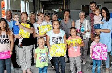 Großlangheim), Mia Sophie Bätz (Scheinfeld), Leonard Fröhlich (Effeldorf), Romina Hinnerkopf (Buchbrunn), Rita Mrfka (Großlangheim), Petra Pfannes (Großlangheim), Krimhilde Servatius (Iphofen), die Familie Andreas Rauh (Mainsondheim) und Großlangheims Bürgermeister Karl Höchner. Einen Preis bekamen auch Gisele Schlag, die auf 112 Eier tippte sowie Gertrud Förth (109). Wettbewerbsleiterin Gudrun Habermann freute sich bei der Preisverteilung besonders darüber, dass alle Gewinner zum Sommerfest gekommen waren, um ihre Preise abzuholen. Unser Bild zeigte die Sieger des Gewinnspiels zusammen mit Gudrun Habermann (links) und Werner Öttinger (rechts) vom Kleintierzuchtverein. 1#googleAds#100x100