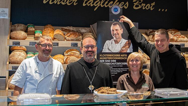 Die Bäckerei der Abtei Münsterschwarzach ist nun Teil der "Aktion Grundwasserschutz" der Regierungen von Unter-, Ober- und Mittelfranken. Im Rahmen der Initiative Wasserschutzbrot wurde die Klosterbäckerei bei der Veranstaltung "Fünf Jahre Wasserschutzbrot" offiziell in das Programm aufgenommenk, wie es in einer Pressemitteilung heißt. Das Siegel in den Verkaufsräumen der Bäckerei wurde gemeinsam mit Abt Michael Reepen und Cellerar Pater Christoph Gerhard angebracht.