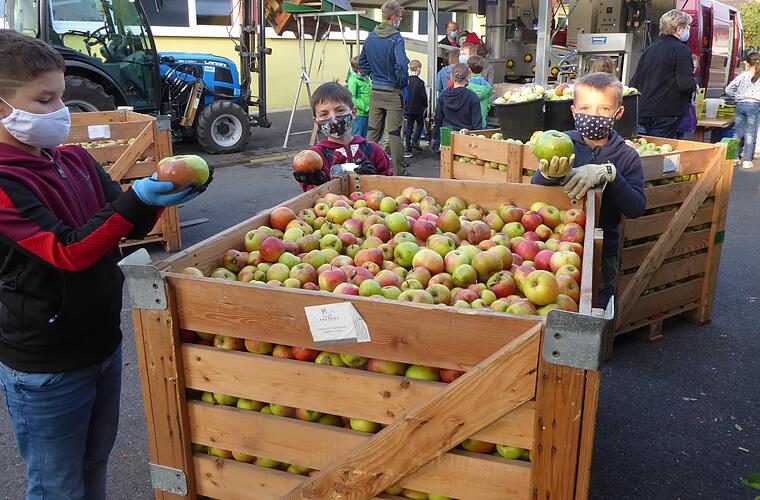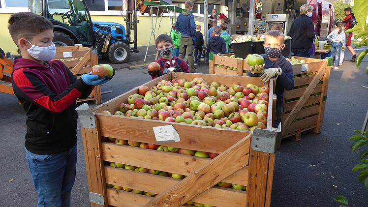 Für die Schülerinnen und Schüler der 3. Klasse der Grundschule Sommerach stand eine besondere Aufgabe auf dem Stundenplan: Sie durften Apfelsaft pressen. Einen Tag vor der Aktion hatten die Drittklässler alle Äpfel aus dem Schulgarten und dem Schulgelände gesammelt. Jonas Braun vom Landschaftspflegeverband hatte in Zusammenarbeit mit der Gemeinde Sommerach die Mobile Kelterei Thomas Schneider aus Brünnstadt bestellt, die auf dem Schulhof aufgebaut worden war. Nach einer kurzen Einweisung gingen die fleißigen Helfer ans Werk. Dabei wurden die Kinder von Mitgliedern des örtlichen Obst- und Gartenbauvereins und Winzer Hubert Kram tatkräftig unterstützt, die am Vortag ebenfalls schon von den gemeindlichen Streuobstwiesen die Apfelernte eingebracht hatten und der Aktion beisteuerten. Gemeinsam sortierten sie an der Anlage die Äpfel aus, halfen beim Verpacken des fertigen Saftes und schafften den Trester weg. Schließlich durften die Kinder den leckeren Saft probieren und den Jahresbedarf für die Schule gleich in den Keller einlagern. Sehr beeindruckt waren die Kinder beim Vergleich mit einem Apfelsaftkonzentrat und als sie erfuhren, aus welchen entfernten Ländern dieses eingekauft wird. Jonas Braun informierte sie über die vielen verschiedenen Apfelsorten, die es in Mainfranken gibt ebenso wie über die vielen Tiere, die in heimischen Streuobstwiesen eine Heimat haben. Die Mädchen und Jungs freuten sich nicht nur über den gelungenen Schultag im Freien, sondern vor allem auch über den leckeren, selbstgepressten Apfelsaft.