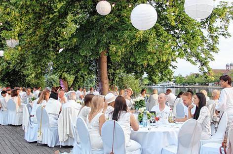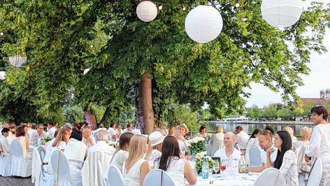 Bei den Gästen, die dem Motto des Abends entsprechend weiß gekleidet waren, stieß das besondere Abendessen unter freiem Himmel wieder auf Begeisterung. „Die Kitzinger Stadtkulisse ist nirgends schöner als hier. Es ist toll, dass man direkt am Mainufer feiern kann“, meinte beispielsweise Wolfgang Knothe, der mit seiner Frau Sabine erstmals das White Dinner besuchte.