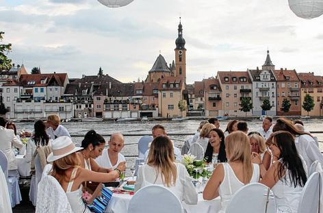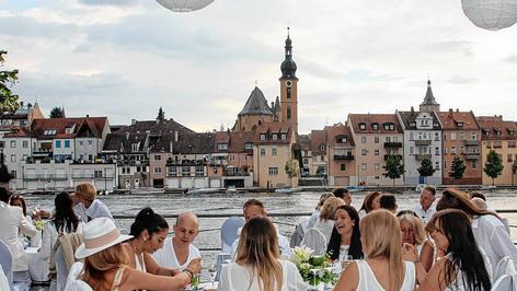 Auch beim zweiten White Dinner meinte es Petrus wieder gut mit dem Kitzinger Stadtmarketingverein: 180 Gäste genossen auf dem Stadtbalkon ein Vier-Gänge-Menü.