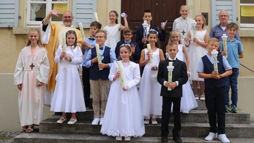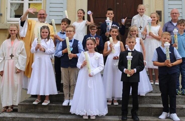 "Jesus Christus - Brot des Lebens" - unter diesem Motto feierte die Pfarrei Großlangheim ihren Erstkommunion-Tag in der St. Jakobus-Pfarrkirche. Die 13 Kinder waren: Sara Kuschnerus, Lukas Mittenzwei, Samuel Neßmann, Marcel Pfannes, Timo Pfannes, Niklas Rodamer (Wiesenbronn), Nalany Sauer, Melina Sauter, Naomi Schmidt, Marla Seynstahl (Kleinlangheim), Julian Urlaub, Leon Weber, Neliah Wilhelm. Die liturgische Gestaltung der Feier lag in den Händen von Pater Isaak Grünberger. Die musikalische Gestaltung übernahmen Pastoralreferent Hermann Menth und Toni Förth.