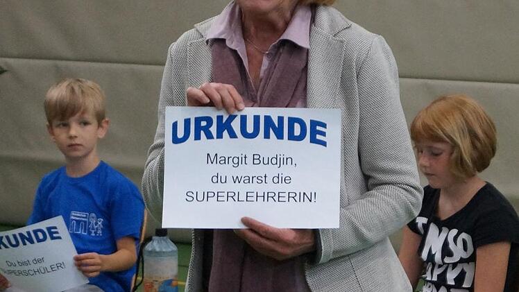 Sie haben ihre Lehrerin Margit Budjin gemocht – mit einer abwechslungsreichen und sehr persönlichen Abschiedsfeier haben sich am Donnerstag die Grundschüler, das Kollegium und der Schulverbandsvorsitzende Peter Kraus von ihr verabschiedet. Auch Schulamtsdirektor Kurt Krause schaute kurz vorbei und übermittelte der stellvertretenden Schulleiterin und langjährigen Klassenlehrerin seinen Dank für die gute Zusammenarbeit und Grüße der Landrätin Tamara Bischof.