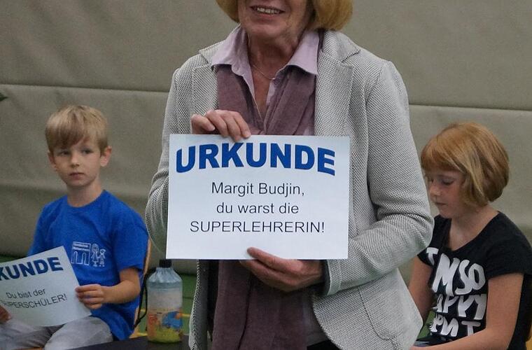 Qualität sei immer wichtig für Budjin gewesen, sagte Krieglstein in ihrer Rede. Der Unterricht bei ihr sollte Spaß machen, aber nicht „Pipifax“ sein. Durch intensive Beschäftigung mit dem Lernstoff und Erfolgserlebnisse sollten die Kinder Freude am Lernen empfinden und Spaß aus der Sache heraus haben.