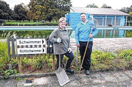 Als Belohnung für die Helfer gab es erstmals ein „Anbaden“ am Abend vor der offiziellen Eröffnung: So waren Helfer die ersten, die ihre Bahnen durch das 21 Grad warme Schwimmerbecken zogen und die leuchtend roten Bänke in Augenschein nahmen – oder nach getaner Arbeit einfach da saßen und den Abend genießen konnten – jetzt ohne Pinsel, Besen oder Kehrmaschine. „Das tat gut“, schildert Barbara Schmitt. Das neue Pächterteam Manuela Müller und Alois Biegel reichte Currywurst und Pommes und ein Gläschen Sekt zum Einstand.
