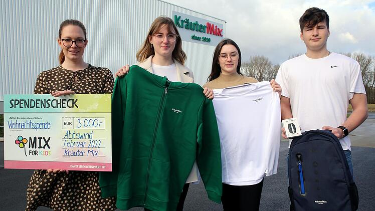 Kurz vor Weihnachten hatten die Mitarbeiterinnen und Mitarbeiter der Abtswinder Firma Kräuter Mix die Qual der Wahl: Jogginganzug, Laufbekleidung oder Rucksack und Fitnessarmband? Zwischen drei Geschenkpaketen konnten sich die Beschäftigten zum Fest entscheiden, heißt es in einer Pressemitteilung des Unternehmens. Daneben gab es die Möglichkeit, an Weihnachten Gutes zu tun und auf das Geschenk im Wert von 40 Euro zu verzichten. Den Betrag spendete Kräuter Mix an Mix for Kids. So konnte das Unternehmen 3000 Euro an den gemeinnützigen Verein für dessen Hilfsprojekte in Deutschland, Albanien und Indien zugunsten benachteiligter Kinder und Jugendlicher überweisen.