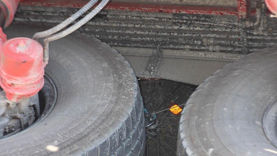Während der Kran das Fahrrad platt walzte, wurde der Mann nur leicht verletzt - nach ersten Feststellungen der Polizeiinspektion Kitzingen erlitt er Schürfwunden und Prellungen. Vorsorglich brachten die Sanitäter ihn ins Krankenhaus.