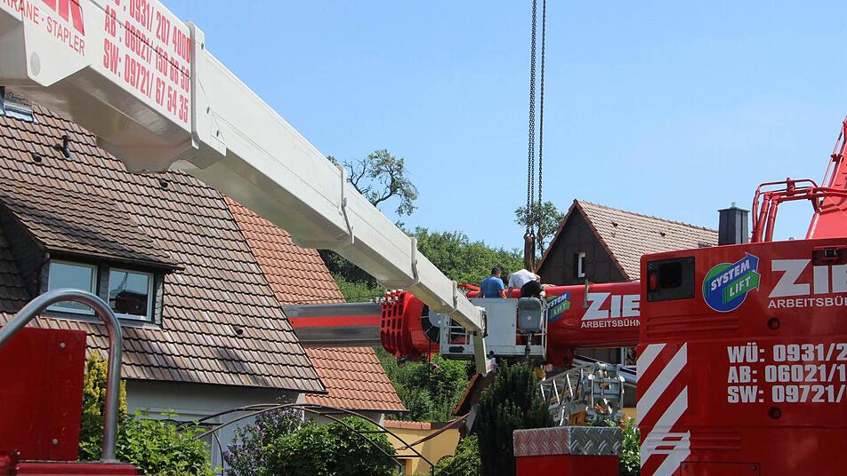 Der 81-jährige Rentner saß gestern Früh an seinem Fenster. Er beobachtete die Bauarbeiten in der "Kalten Grube", im Anwesen gegenüber. Korittke berichtet: "Gegen 9 Uhr hatte ein großer Autokran gerade einen kleinen, gelben Kran am Haken." Er wollte ihn von der Straße über eine Gartenmauer in den Vorgarten heben. Der "Kleine" sollte zum Dachdecken verwendet werden.