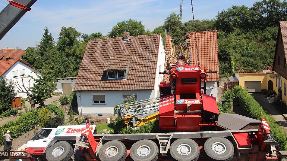 Der Krankörper erfasste den 79-Jährigen, der Kranarm schlug in das Einfamilienhaus nebenan ein und spaltete dessen Dachstuhl. Es habe einen dumpfen Schlag getan. "Man hat die Ziegel splittern gehört. Ich hab' so gezittert", sagt Korittke leise und bewegt seine Arme hin und her. Die Arbeiter der Dachdeckerfirma seien sofort zur Unfallstelle geeilt und hätten den Rettungsdienst gerufen.