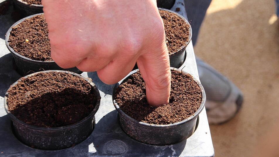 Die Kitzinger Sternenkinder tauchen ihre kleinen Zeigefinger ein paar Zentimeter tief in die Erde. Dann picken sie sich ein Samenkorn und versenken es in dem schmalen Loch. Schnell ist die Mulde wieder gestopft. Mit der flachen Hand drücken sie die Erde fest.